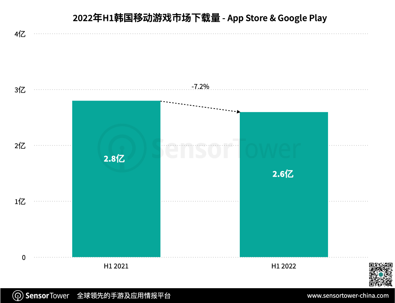 下载量方面,2022年上半年韩国手游总下载量为2.6亿,较去年同期下降7.2%。其间Google Play与iOS途径下载量别离为2.1亿、5000万。安卓用户依旧是韩国手游商场最主要集体,占比达80.9%。