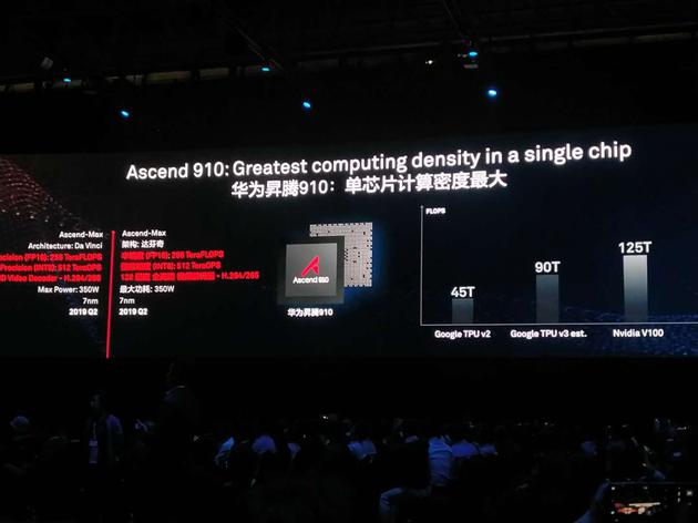 轮值董事长徐直军宣告正式发布两款 AI 芯片:昇腾 910 和昇腾 310 ,这两款AI芯估计下一年上市。此外还推出了包含“打造全栈计划”在内的五项 AI 战略。徐直军介绍,昇腾 910 是现在单芯片核算密度最大的芯片,核算力超谷歌及英伟达,而昇腾 310 芯片的最大功耗仅 8W ,是极致高效核算低功耗 AI 芯片,两款芯片估计下一年第二季度正式上市。此外,在2019 年华为还将发布 3 款 AI 芯片,均属昇腾系列。